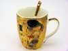 dekoracyjny kubek porcelanowy z łyżeczką, seria GustaV Klimt Pocałunek